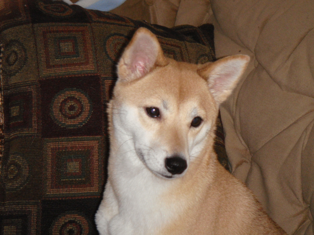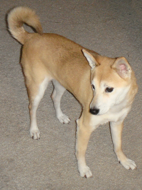 Bokkie is a sweet submissive female red Shiba Inu. She is relatively small at 17 lbs and she knows just how to be a little lady! She gets along with any dogs that are not overbearing as they tend to scare her. She is fine with cats and gets along with kids too! She is house and crate trained. She does have glaucoma but has had laser surgery and is under control by the use of drops.