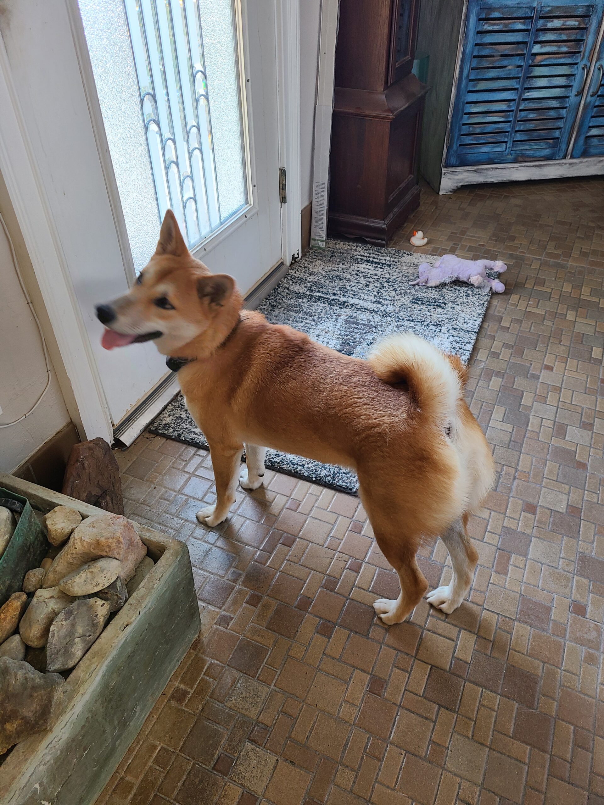 House trained and knows how to use a doggie door (which is more than I can say for my Shibas )